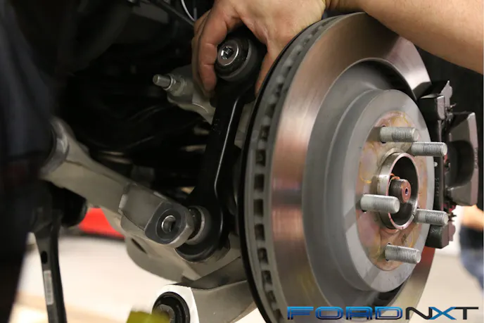You will reuse many of the factory fasteners, so make sure you keep them organized and, if this is your first rodeo, put them in bags or bins marked with their locations. Colt is an old hand, having upgraded 30-plus S550 rear suspensions, so he knows where everything belongs.