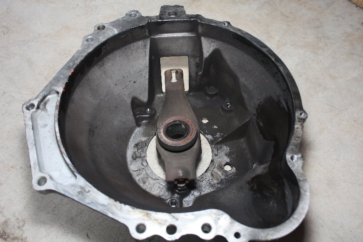 Before installing the bell housing you have to decide which hydraulic conversion kit you want to install. The McLeod Racing 14-326 is the kit for a stock type vehicle with an external slave cylinder and the 14-325 kit has the hydraulic throw out bearing. The 14-326 will not work with long tube headers. The “QD” on the end of the part number adds the quick disconnect hose option to either kit which makes the install much easier. If you are using the 14-325 kit with the hydraulic throw out bearing, you can pull the clutch fork.
