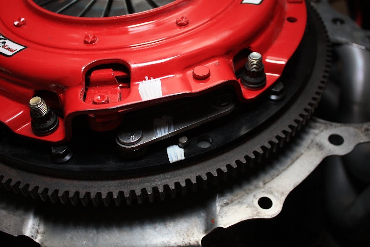 Where do you begin on clutch selection with so many options? When you get to the 500 hp and 500 lb/ft at the wheels mark, it starts to get tricky on picking a clutch that holds the power and is still easy to drive. You can step up to the puck- style clutches and they get harder to drive on the street. Additionally, you can have issues with clutch chatter and very stiff clutch feel, which will make you not want to drive the car around in traffic. This is where the twin disc clutches come in; they can handle tons of power by doubling the surface area of the clutch disc and still give you a decent pedal feel. The twin disc also eliminates the causes of chatter in daily driving situations.