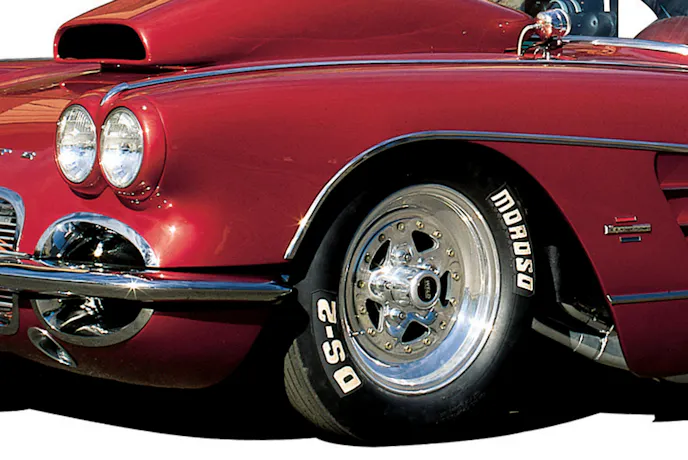 With your tire pressures monitored to the highest degree, we’ll look at the tire offerings from Moroso with front rolling stock dedicated for the dragstrip. The Drag Special and DS-2 units are track-only tires offering minimal rolling resistance under acceleration and a broad footprint during braking for increased track contact.