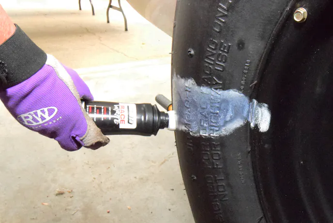 In this digital video age, crew people are getting savvy at recording a launch and critical first few hundred feet of a pass to replay—a marked tire helps review those videos. One of the positives of Race Write is that it is formulated to be easily removed by simply wiping firmly with a clean rag.