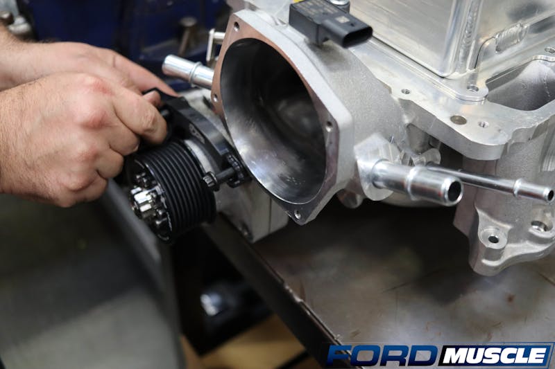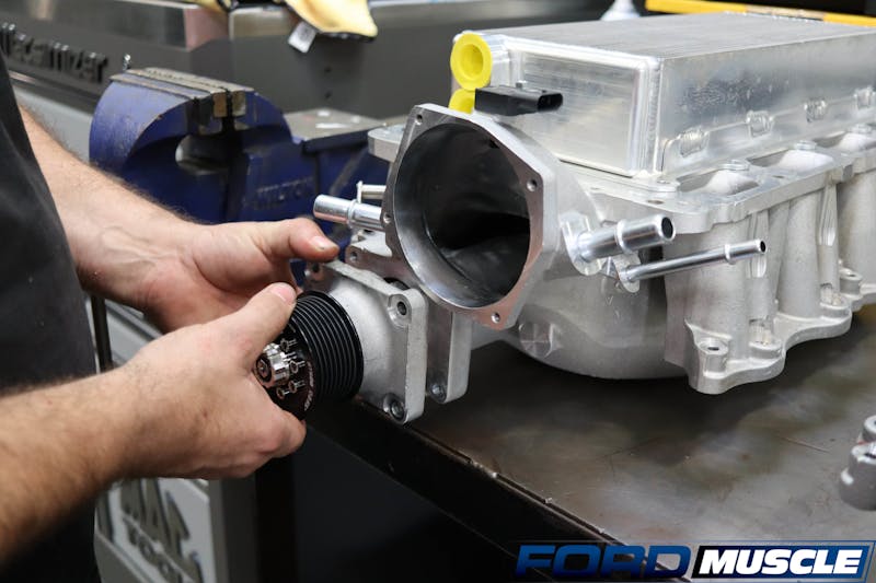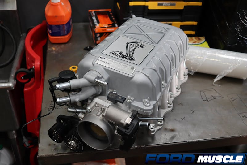 While making the decision to have our blower ported, we had Kong throw in its 108mm throttle body with our returning supercharger. The stock GT500 throttle body measured out to 92mm, but our goal was to optimize air flow and the stock flapper valve would have been yet another restrictor. This would not only closer match the ported blower, but would provide better throttle response and driveability. We would be lying to ourselves if we said that our focus was driveability and not huge power gains though.
