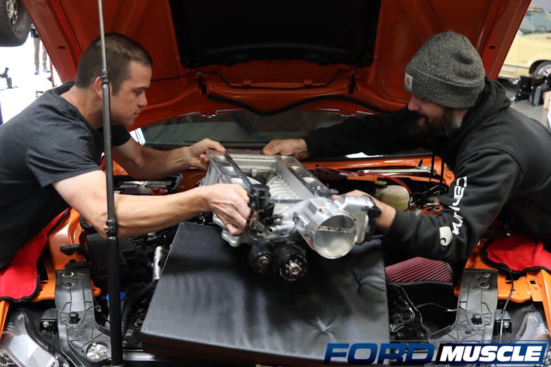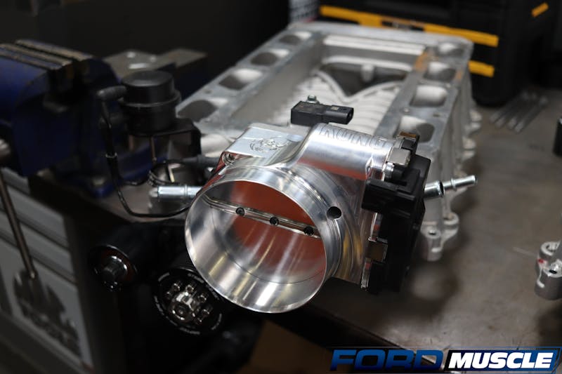 While making the decision to have our blower ported, we had Kong throw in its 108mm throttle body with our returning supercharger. The stock GT500 throttle body measured out to 92mm, but our goal was to optimize air flow and the stock flapper valve would have been yet another restrictor. This would not only closer match the ported blower, but would provide better throttle response and driveability. We would be lying to ourselves if we said that our focus was driveability and not huge power gains though.
