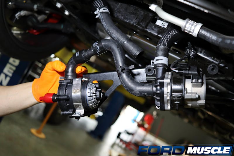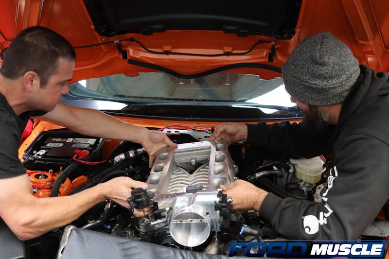 Once we got the chassis configured properly with the use of BMR Suspension, Mickey Thompson tires, and a killer set of Forgeline wheels, we were able to step up to the plate with a host of bolt-on goodies. We added new Fuel injector Clinic injectors, JMS Chip FuelMAX EZ Fuel Pump Voltage Booster, JLT intake, Ford Performance Oil Separator, and everyone’s favorite supercharger modification: a smaller pulley from GripTec. After much success with such few modifications, we went back to our drawing board and crossed off the “Make Power” bullet point before proceeding to one of the final bullet points: “Make More Power.”