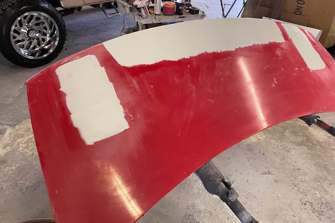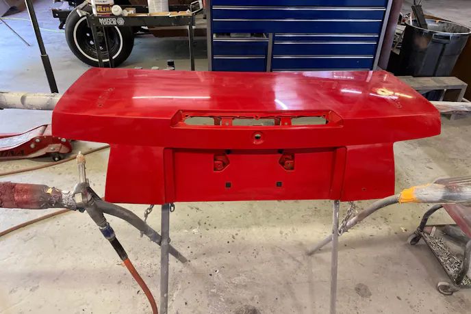 Tim began the process by removing the tail lights, bumpers, and exterior trim pieces. Once the car looked like a theft recovery, It was then time to sand down and fill in the areas where Mother Nature had left her marks on the chassis. As previously mentioned, the trunk lid’s third brake light, keyhole, and wing mounts were on the list to be filled in. The Carter’s Customs vent was slated for reinstallation, but this time, the gap between the vent and the front of the hood would be filled in, creating the desired GT500-like aesthetics. Given that the car would primarily see track use, there was no need to retain pesky license plate bolt holes.
