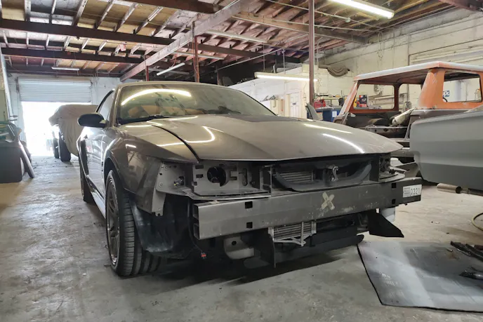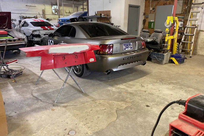 We decided it would be a nice gesture to give the chassis some TLC before showcasing it in the Maximum Motorsports booth at the 2023 Mustang Week. While we’re fans of patina on classic cars and trucks, the factory Mineral Gray paint on our platform had been weathered and damaged by the sun, giving it the appearance of neglect rather than desirable patina. Years of sitting idle after an unexpected engine shutdown had left our Cobra exposed to the elements, and our unfortunate chassis bore the brunt of Mother Nature’s wrath. Every time we worked on it, we discovered more dents, hail damage, and, in some places, even rust. It was high-time to address these imperfections and present Mustang Week attendees with a stunning 2001 Cobra, even if it was primarily a track car.