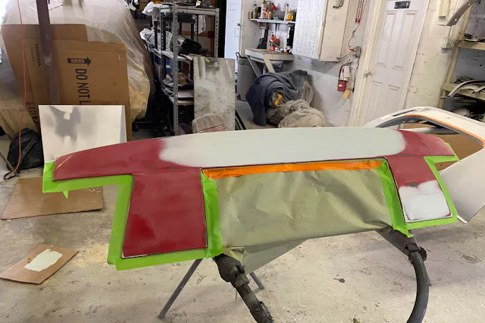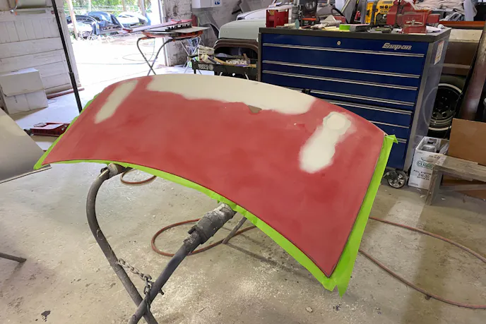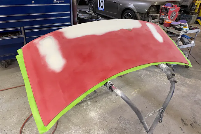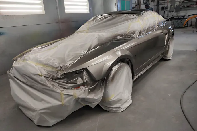 With the prep work completed, the next step involved carefully taping and sealing off the interior, wheels, engine bay, and trunk to prevent any overspray from affecting these areas before the car was moved into the paint room.