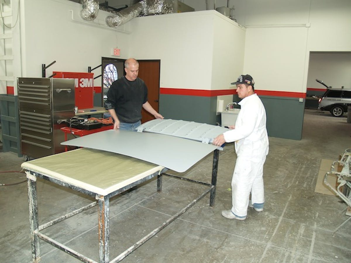 Each panel was primered and block sanded with 600-grit paper prior to painting. A table such as this is great to keep the parts from moving when painting. Covering the top of the table with masking paper will keep it from receiving extra layers of paint and primer in future paint efforts.