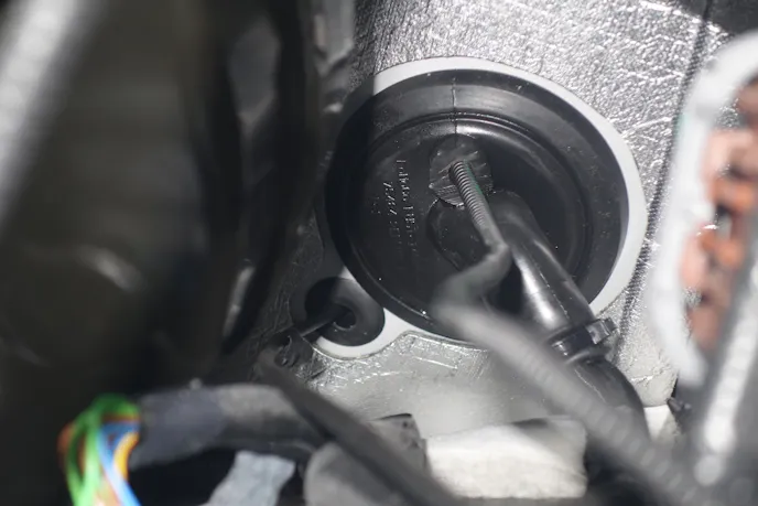 Rick routed the pedal-position wire through a rubber boot in the firewall and connected it to the PedalMax wiring which taps into the pedal-position sensor wiring. Then he hid the PedalMax under the carpet behind the center console (after ensuring it was functional) and routed the boost knob wiring through the dash. JMS recommends mounting the knob below the emergency brake release handle.