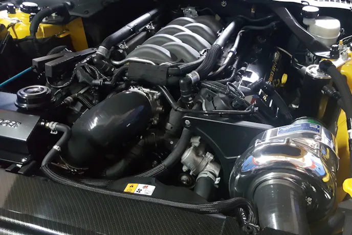 That really shows on the MAK test car, which features a full Hooker exhaust, an E85-capable fuel system bolstered by DeatschWerks and JMS gear, and a custom calibration, which lets it rev. On this car, the car picked up over 40 horsepower at the same boost level with just a blower change. A P-1X and a bolt-on Coyote are certainly an impressive pairing, and the potential for more power at a higher boost level and matched with a higher-revving intake is clearly there.