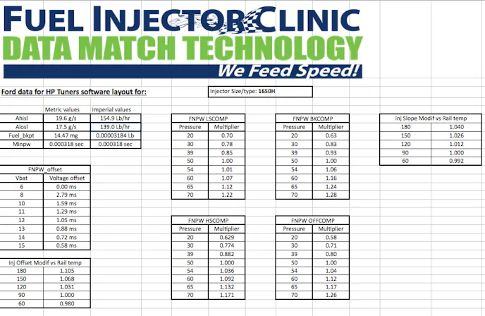 Of course you want each injector to flow the same amount. Dynamic matching is the first stage of the Data Match Technology process requires pulsing the injector at multiple points through the entire linear operating range and matches the injectors that flow within 1 percent of each other. Fuel Injector Clinic provides precise data on a sheet with each serialized injector set.
