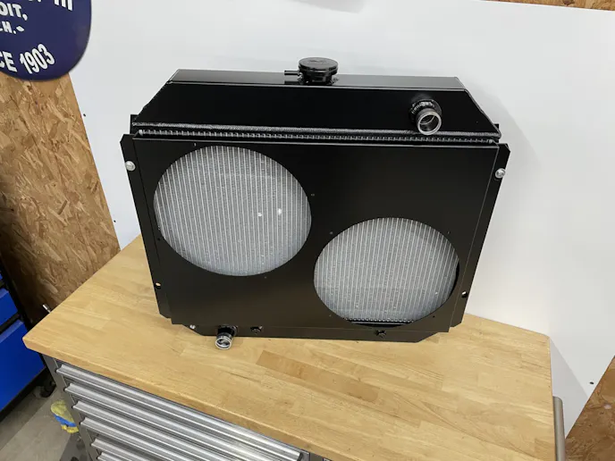 Talking to Matt, he offered to reconfigure Champion’s 3-row radiator designed for the ’65-’74 F100 to work with our Coyote. At this time, there was not a bolt-in radiator on the market that you can use with a Coyote swap without building some custom radiator hoses. Because this swap is exploding in popularity, we were determined to work with Champion to bring a radiator to the market that’s an easy drop-in for those enthusiasts doing this at home—in other words for guys like us.
