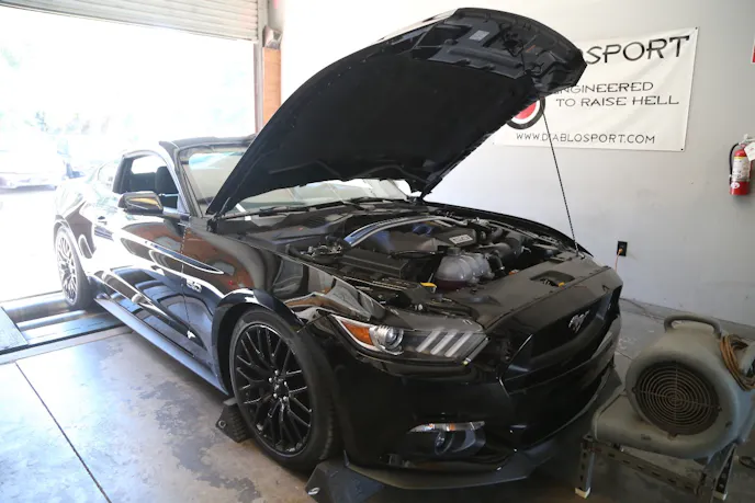 With the new system in place, Sam dialed up a custom tune for the JLT-equipped Coyote. Because the air volume and velocity is different with the new induction, the mass air transfer function must be adjusted. Of course, if you are tuning, you might as well optimize the combination. In this case, the 2017 Mustang GT is much like its 2015-2016 predecessors, so Sam knew just what to do.
