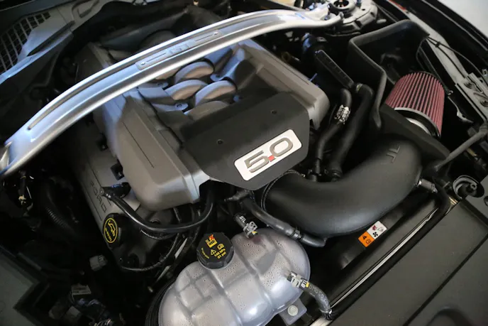 In the case of the induction system, one of the most popular cold-air induction systems produced for late-model Mustang is from JLT Performance. The company got the jump on designing a kit for the Coyote engine in the 2015+ Mustangs, and they haven’t looked back except to tweak the system with some minor upgrades.