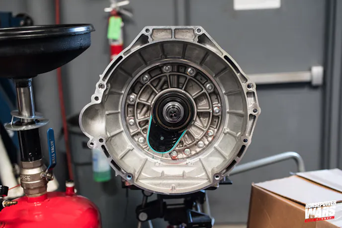 Before installing the converter onto the transmission, we poured about a half of a quart of automatic transmission fluid (ATF) into the converter. We also used some of the ATF to coat the transmission seal, front pump bushing, and the converter neck. The converter was installed onto the transmission with extra care not to damage the front seal or bushing, before the pilot of the converter was held to center it as much as possible. The front mounting pads were rotated in a clockwise direction, allowing the splines and hub flats to engage with the pump. We knew installation was going as planned, thanks to two “drops” of the converter before it was all the way in.
