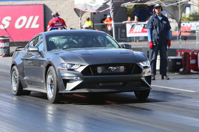 The Steeda drag-suspension-equipped Mustang was outfitted with Weld RT-S S71 wheels wrapped in Toyo Proxes TQ drag radials, and started off its time on the quarter-mile doing pretty well.