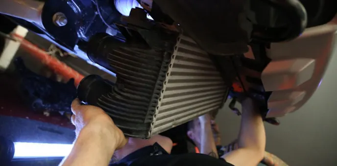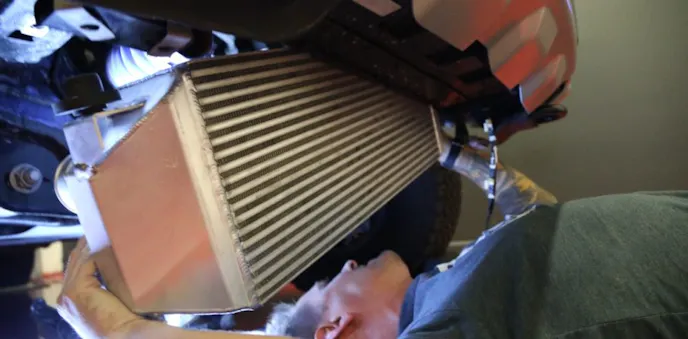 “The factory induction system is certainly limited by its panel type paper filter, airbox lid and tube. The lid itself allows for tremendous turbulence. The intercooler is certainly not bad, it’s far better than previous models, but it’s a production-based core where OEM’s only target a specified goal versus extra capacity,” Dustin explained. “We were able to get 54 percent more volume while increasing efficiency with a new offset air fin we developed, achieving increased cooling capacity.”
