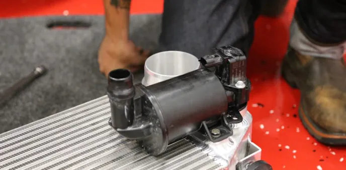 The BoostMax also features an adjustment knob, so we when we arrived in South Florida we ran baseline testing again with the knob turned to zero. Then we cranked up the boost to document the difference and then began to test the benefits of the Whipple hardware — an upgraded intercooler and a CAD-designed cold air intake.