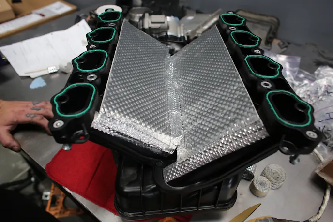Unfortunately like all other V-8 engines, the intake manifold on our Coyote engine is still subject to the same radiant heat exposure that has plagued all V-configuration engines since their design early in the 20th century. This additional heat robs horsepower as it reduces the density of the incoming air charge.
