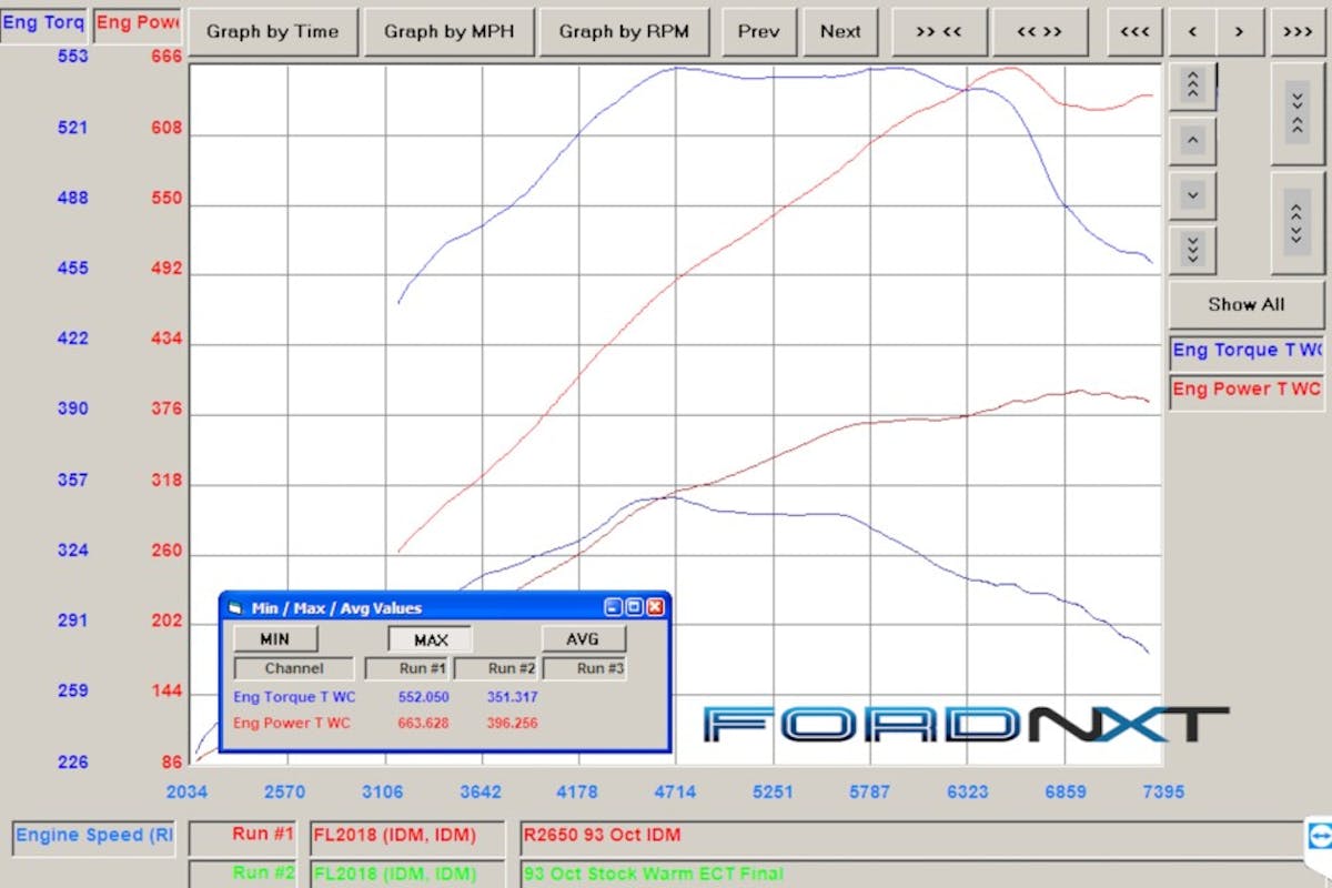 After working his magic with those parameters, Matt’s Mustang responded nicely. Rear-wheel output jumped from 396.25 horsepower and 351.31 lb-ft of torque to 663.62 horsepower and 552.05 lb-ft.