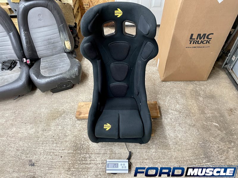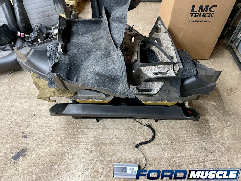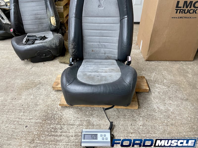 As safety has taken a center stage of this article, we’re still weight weenies at heart and had to bust out the scale to weigh the stock seats versus our new safety seats. The results were astounding, as the Cobra’s passenger seat tipped the scales at 42.9 pounds, and the driver’s side at 60.1 pounds! Meanwhile, our weight-conscious seats came in at 27.3 pounds each. That’s a total savings of 48.4 pounds before we started to remove the associated trim with the originals.