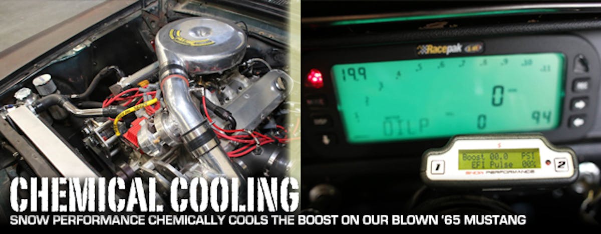 We’re installing a Snow Performance Stage 3 Boost Cooler kit, Part No. 20100 on our ’65 Mustang, Project Biting the Bullitt. Our supercharged engine combination is already making 875 horsepower (690 hp to the wheels), and with the addition of the Snow Stage 3 system, we expect to see more.
