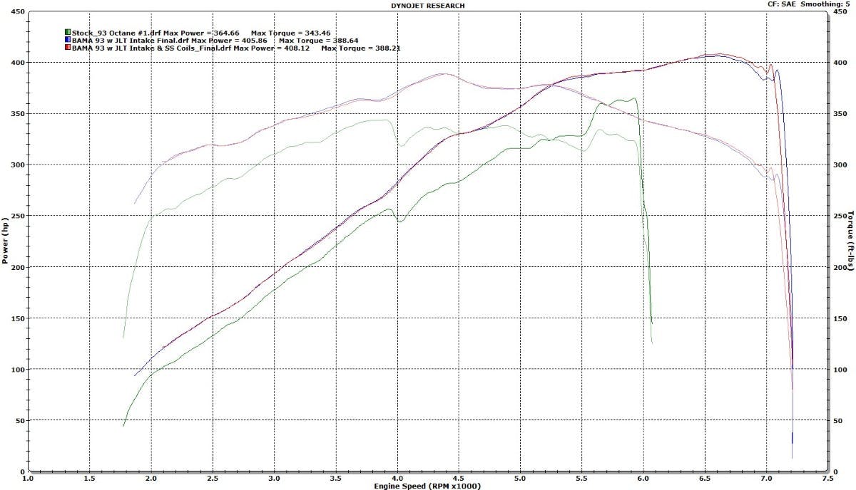 As part of the Trinity article, we used the pre-installed tune from Diablosport, changed the options to account for our cold-air kit, and rolled the BAMA Dynojet to 394.4 hp and 375.4 ft-lbs of torque.