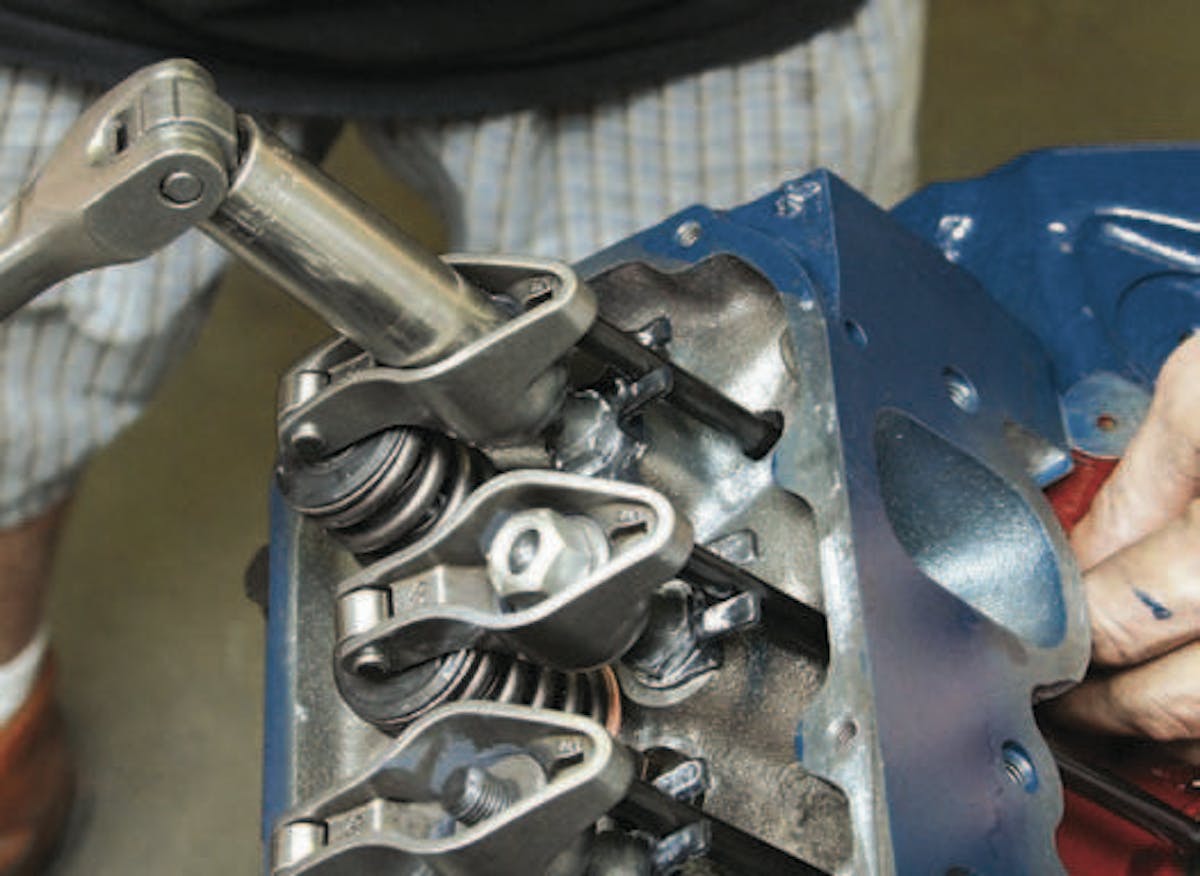 Valve-lash adjustment begins at cylinder number-1 with both valves just closed. Twirl the pushrod with your fingertips while slowly tightening the rocker adjustment until there is slight resistance. Slowly tighten the adjustment clockwise 1/4- to 1/2-turn. Lock the adjustment down.
