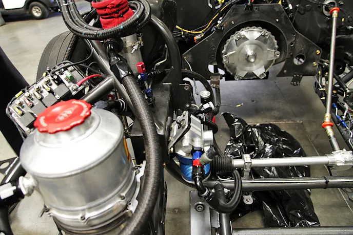 Here you can see where we’ve positioned the Primer in our Camaro, giving us easy access (with the front clip removed) to prime the engine before each and every pass down the track. A short 10-second spin with the drill and the engine cavities and valvetrain are lubricated and ready to be spun over.