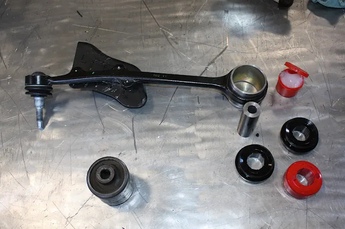 However, the polyurethane comes at a cost. Most of us already know the polyurethane is stiffer than the rubber bushings they replace. A durometer is the instrument used to measure the hardness of a visco-elastic material such as rubber or polyurethane. The higher durometer reading the stiffer the material, which also means there is less deflection, as well. That increased stiffness can cause an increase in NVH over the factory rubber bushings, but that’s where the performance increase comes from. Remember, the rubber bushings are there to keep NVH levels low, and provide a quiet ride. The OEM bushings are a trade off between high performance and what most consumers consider tolerable NVH levels. They aren’t meant to be the best for performance. They are meant to be the best for NVH standards.