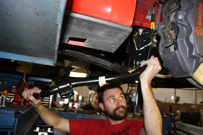 That’s because every IRS-equipped Mustang ever produced has suffered from excessive wheel hop during aggressive driving, such as what might occur at the drag strip. Early indications are the 2015 model suffers from the same issue. Energy Suspension and Joey Granatelli worked together on this 2015 Mustang GT owned by Granatelli Motor Sports. To establish a baseline, they did a series of drag launches with the stock tires. “One of the biggest things I noticed was the significant amount of wheel hop,” says Energy Suspension’s R&D Engineer Ben LaHatt.