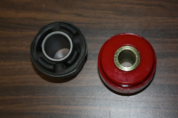 However, the polyurethane comes at a cost. Most of us already know the polyurethane is stiffer than the rubber bushings they replace. A durometer is the instrument used to measure the hardness of a visco-elastic material such as rubber or polyurethane. The higher durometer reading the stiffer the material, which also means there is less deflection, as well. That increased stiffness can cause an increase in NVH over the factory rubber bushings, but that’s where the performance increase comes from. Remember, the rubber bushings are there to keep NVH levels low, and provide a quiet ride. The OEM bushings are a trade off between high performance and what most consumers consider tolerable NVH levels. They aren’t meant to be the best for performance. They are meant to be the best for NVH standards.