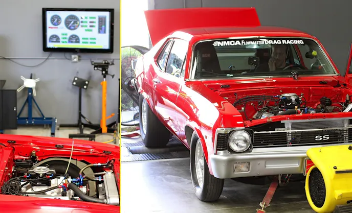 This project followed the installation of a EZ-EFI 2.0 on a 1970 Nova owned by West Coast drag racer Mark Rapp. The engine is a 406ci small-block with a 12.3:1 compression ratio, Dart Pro 1 230cc cylinder heads (2.08/1.60 valves), a Comp Cams solid roller camshaft (276/284 duration at .050 and .630 lift), Edelbrock Super Victor intake and Lemons step headers. With a single 1050 cfm carb modified only with jetting and air bleeds, the car runs in the low 9.80s. On its baseline dyno run, the Nova pulled 462.5 horsepower at 6,400 rpm. Peak torque was 392.2 lb-ft at 6,100 rpm. The air/fuel ratio varied between 12.35:1 and 13.14:1 between 6,000 and 6,900 rpm.