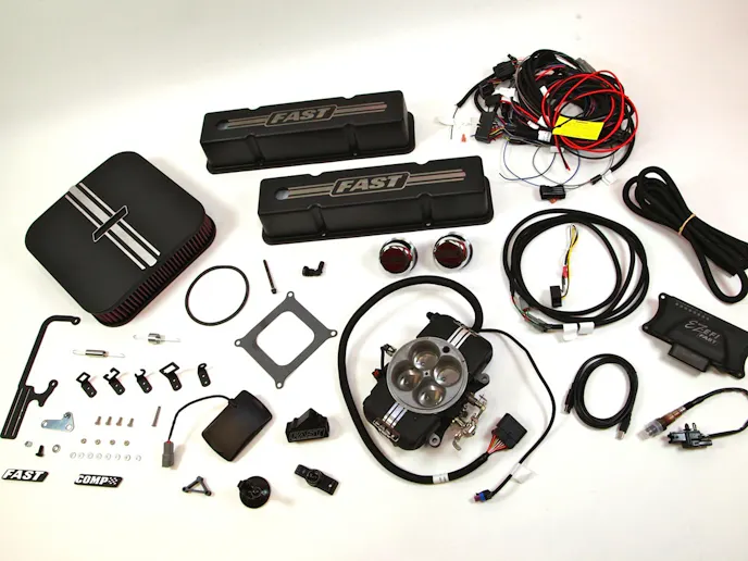 The original FAST EZ-EFI system boasts plenty of features that make carburetor-to-EFI swaps so attractive these days. Among those are: self-tuning strategies that eliminate the need for a laptop and advanced computer skills; fast startup procedures and continuous self-learning capability; minimal hardware and electrical connections; and a self-contained throttle body with all the necessary injectors and sensors to facilitate an easy installation.