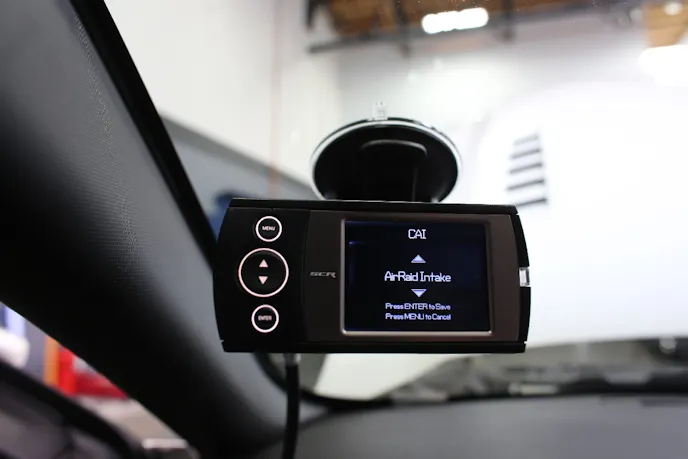 Cold air intakes tunes are loaded in the SCR -users need only select which one from the menu to optimize their tune.