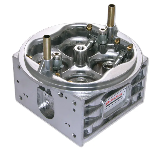 As aluminum components have become more the standard in the racing carburetor world, Quick Fuel has worked to incorporate tuning features to virtually every facet of the carburetor, thus making each element adjustable simply by changing out orifice bleeds. This has simplified the practice of tedious machining down to just replacing screw-in bleeds with another using a screwdriver. This not only makes tuning a much easier process, but allows for placement of the same carburetor on another engine with some adjustments.