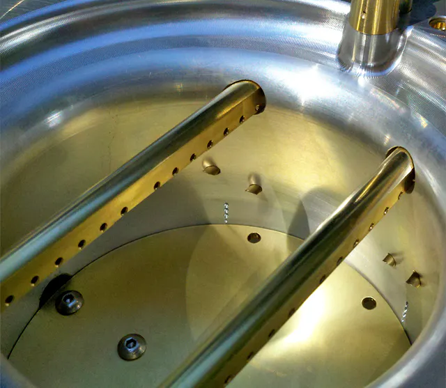 The fuel flows through the main holes in the bottom of the body, and an additional set of holes in the lower part of the body allows for fuel enter through the the sides and the bottom so that all of the fuel isn’t trying to come out of one place in the bowl. This cuts down on phoning – or flooding – and adds more capacity.