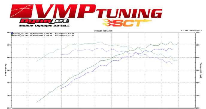 VMP has been putting together supercharger packages for years. Buying one of those packages means that a proven and reliable tune is backing the installation. With that in mind Starkey says that customers who purchase a supercharger package are going to be able to bolt on the GEN II system, install their new VMP tune, and start enjoying their upgraded GT or GT500 right away. Power Gains
