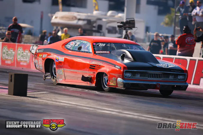 Todd Tutterow, driving Harry Hruska’s Precision Turbo Pro Mod Duster, has already been impressed with the performance of this converter, setting the MPH record for the class the first time out. The car went an astounding 263 MPH, and Tutterow told Chance immediately after the run, “there wasn’t even a tune up in the car, this thing will go 270 mph.”