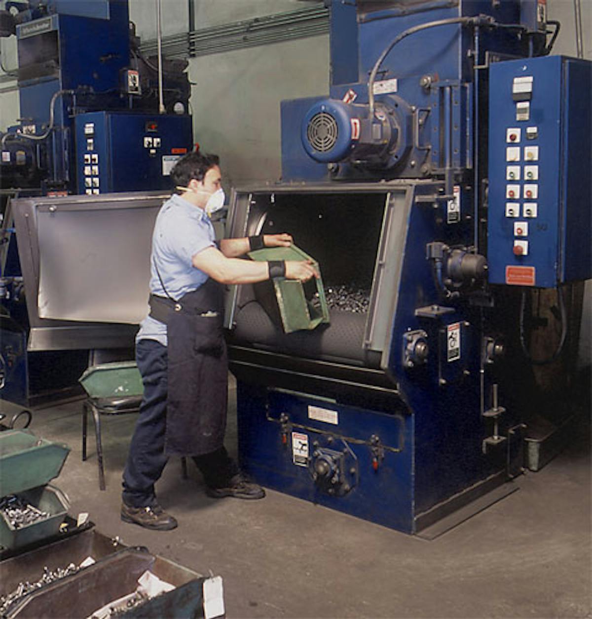 After the fastener comes out of heat treating or aging, the batch of fasteners are shot peened to remove scale and make the surface smooth, then routed through tumblers to deburr the fastener. Centerless grinding technique is used to prep the fastener to get threads rolled into the fastener blanks.