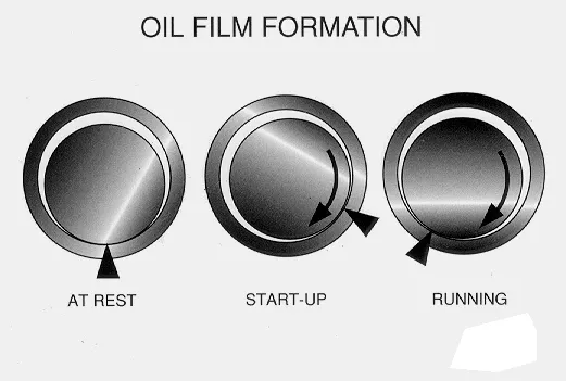 There are several factors that can cause lubrication changes and the hydrodynamic lubrication regime can turn into a boundary film lubrication regime where metal to metal contact can occur during load cycling. McKnight explains that, “oil starvation, high loads, low rpm speed, roughness of bearing or shaft surfaces can affect bearing lubrication. Because the bearing is designed to create an oil wedge by the shaft’s rotation, when the engine is not rotating, there is no substantial bearing lubrication. During start up, there will be a minor amount of solid to solid contact until the film is built up around the bearing.”