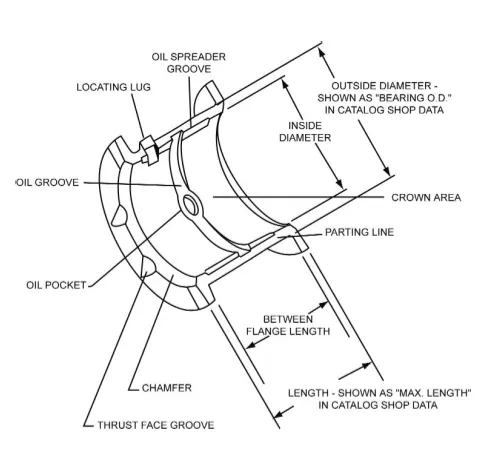 - Each bearing half is made larger than an exact half for a crush zone that helps the bearing fit snugly against the housing.