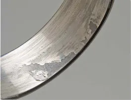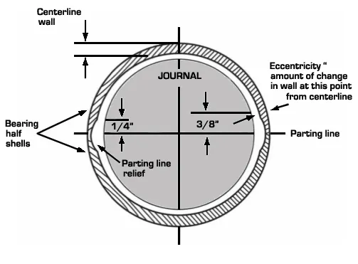 - Engine bearings are designed with an eccentric wall for greater oil flow to flush out particles and carry heat away.