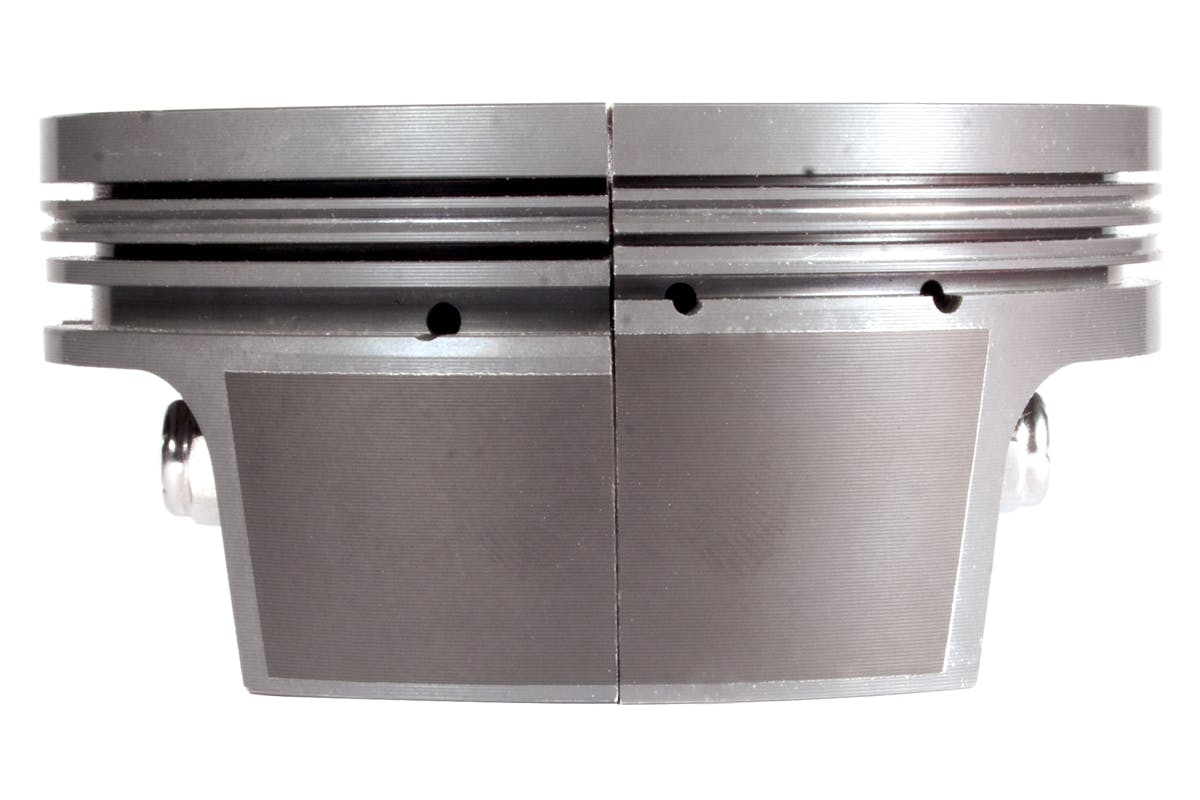 The removal of the oil ring support rail reduces the ring pack’s weight, and less weight in a rotating assembly is a good thing for performance. In addition, the thinner ring groove permits the piston designer to increase the cross-sectional thickness in key high stress areas like the valve pocket to top ring groove area, along with improving ring land heights.