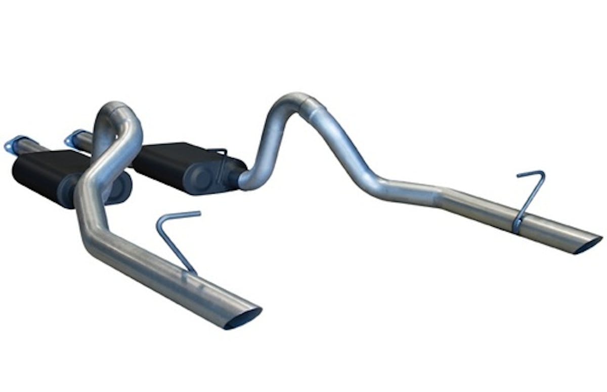 Because we’re rearranging the rear end of our Fox, from the 4-link style OEM suspension to a torque arm, we also have to modify the layout of our exhaust setup. In doing so, we’ve chosen Flowmaster’s iconic American Thunder Series cat-back exhaust system, featuring their Super 44 Series mufflers with an aggressive tone known only to Flowmaster.