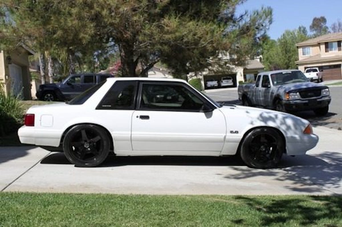 Our ultra clean supercharged Fox body Mustang after the installation of our Maximum Motorsports suspension.