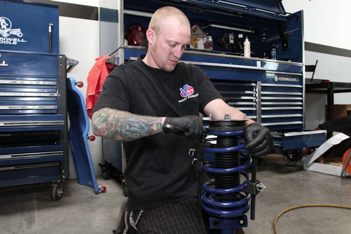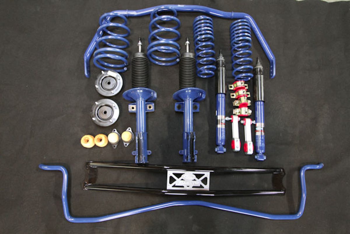 The standard lowering springs provided in the kit drop the car by one inch. If you prefer to go lower, and we did, you can use the optional M-5300-K springs for a one and a half inch drop instead. When ordering a kit for yourself, be sure to specify this up front. According to Kershaw, the additional half inch of drop is for looks only. “With the 1″ drop it maintains excellent road manners. We offer a 1.5″ drop also but this offers virtually no improvement in handling but does decrease the ride quality substantially,” he explained.