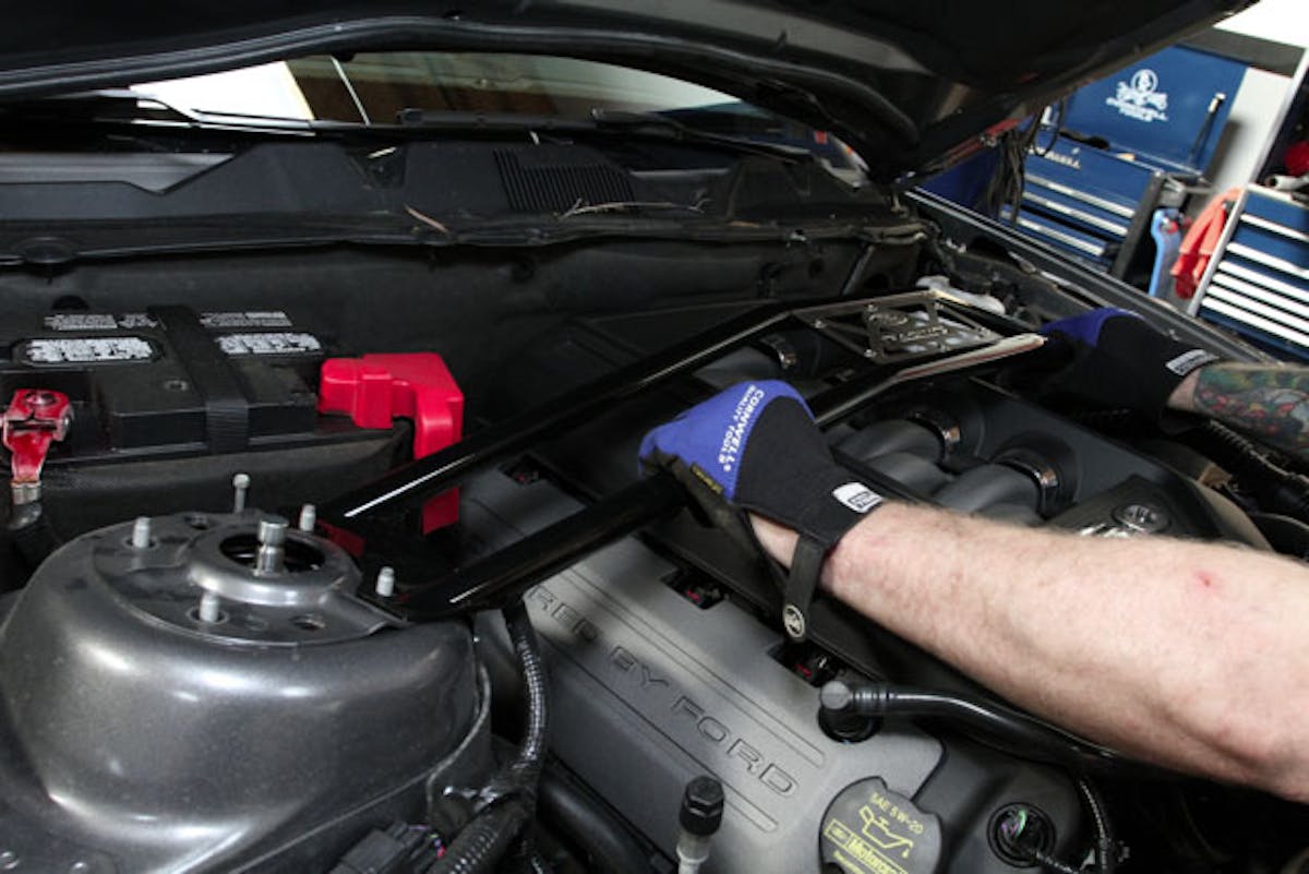 Next, we fit the strut tower brace.