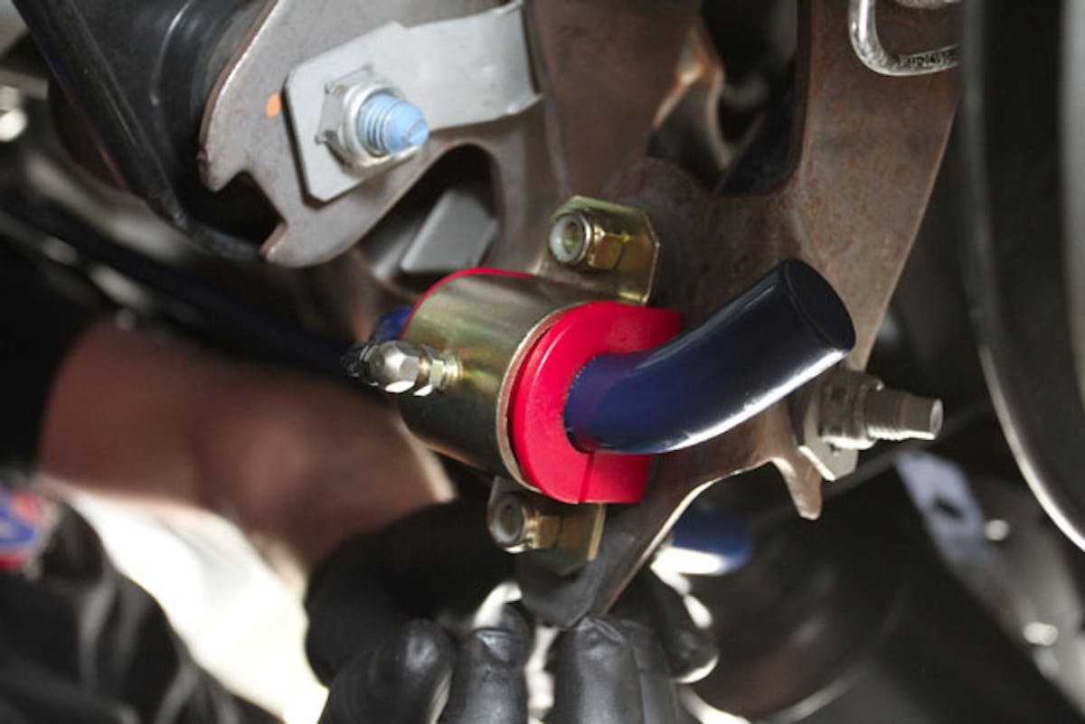Be sure to apply the provided lube between the sway bar and its urethane bushings or you are likely to encounter some squeeks.