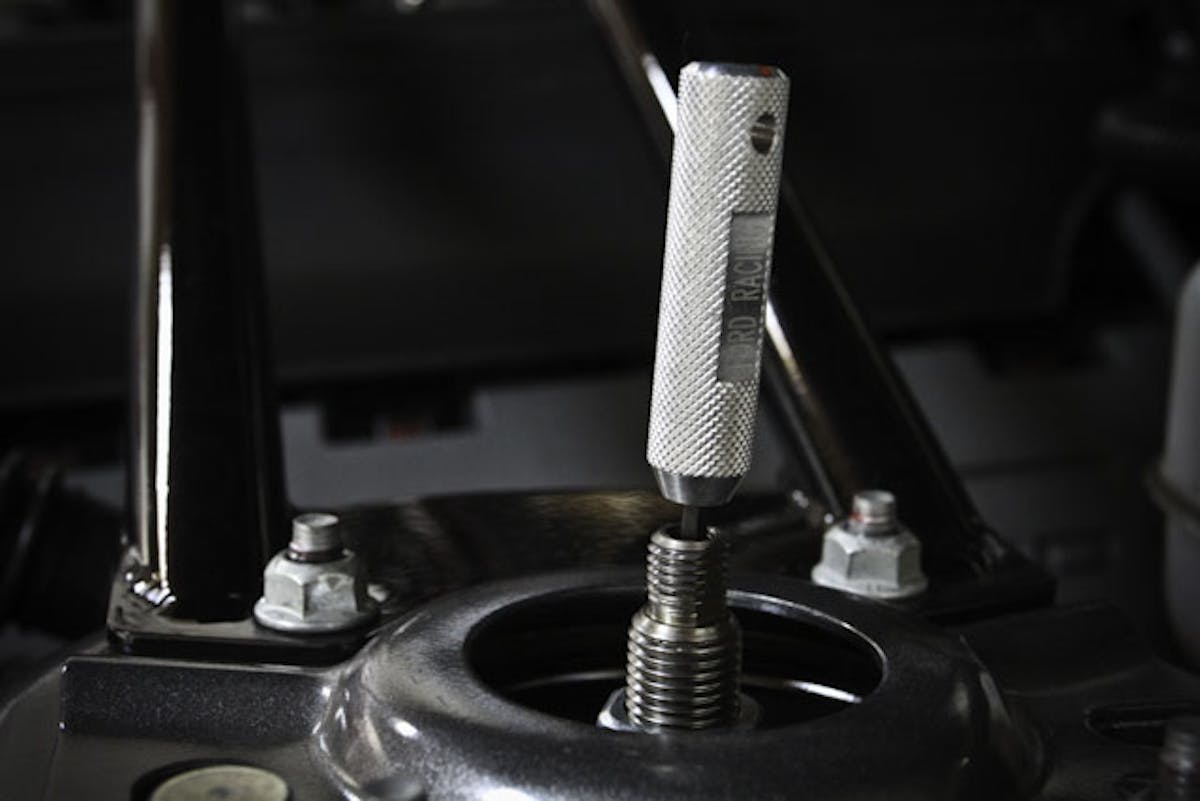A supplied tool allows the dampers to be adjusted from full soft to full hard, and stages in between, in seconds. A total of eight turns of continuous adjustment are available. Fully seated in the clockwise direction, the dampers are at their stiffest setting. Care must be taken not to overtighten the adjuster. Unwinding by eight full turns puts the dampers at their softest rates.